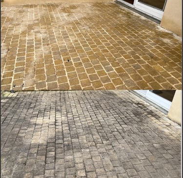 > Les dalles, terrasses et allées s’encrassent avec le temps (mousses, lichens, traces noires, taches). Nous réalisons un nettoyage en profondeur adapté au type de surface (béton, pierre, pavés) pour retrouver un sol propre et antidérapant.