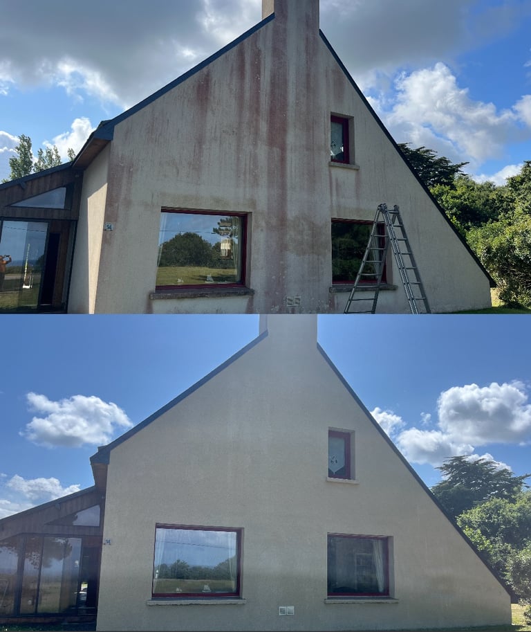 > Après le nettoyage, nous pouvons appliquer un traitement anti-mousse pour limiter la réapparition des micro-organismes, puis un traitement hydrofuge pour renforcer la protection contre l’humidité et les intempéries. Résultat : une façade plus propre, durablement protégée et qui valorise votre maison.